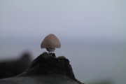 Kleine Pilze auf einem Stück Lärchenrinde. Aufgenommen mit Sony Alpha 7, Leica Macro Elmar-R 1:4/100 mm, 1/30 s, ISO 6400, Blende vermutlich 16
