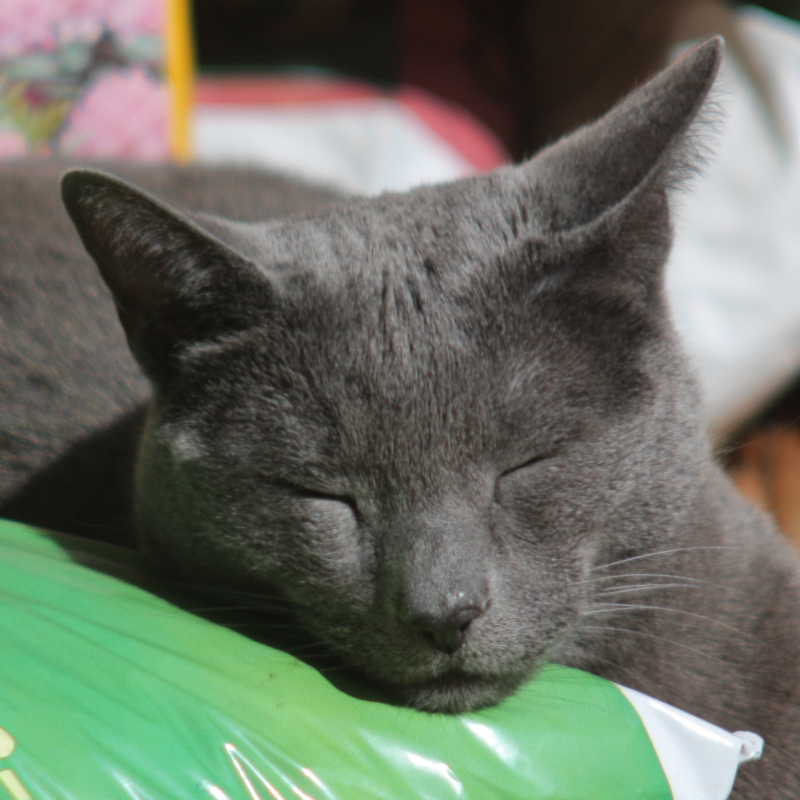 Unser Gärtner bei der Pause aus etwa 3m, Iso 100, Offenblende (3,5), 1/1000 sec. und ein 50% Crop: