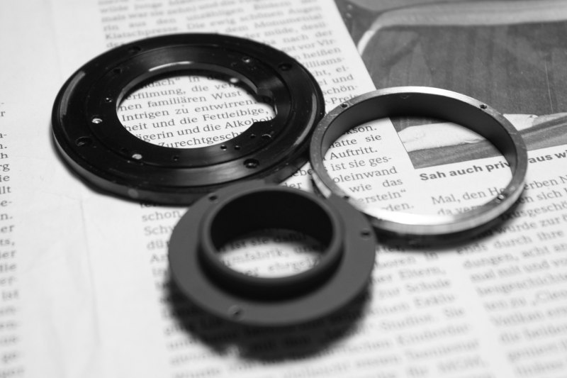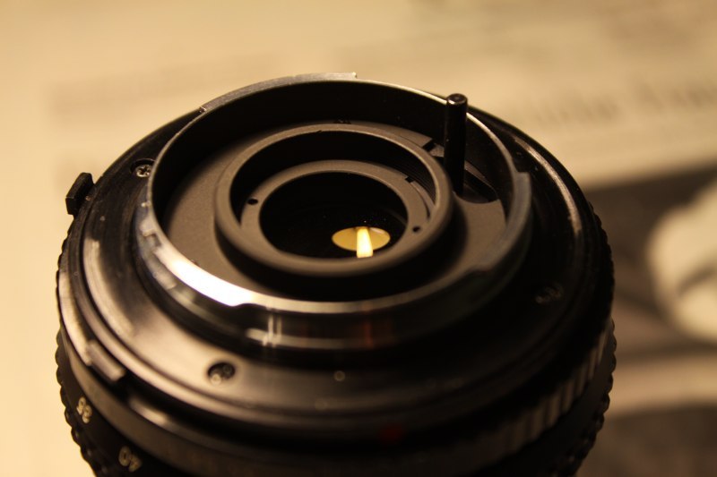 Für den 2mm-Ring habe ich ein Bauteil eines alten Miranda 1.8/50 benutzt und abschließend noch kleine Stellen der Lichtdichtung verklebt und geschwärzt.