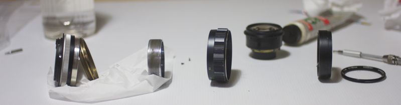 Wahrscheinlich ist das vom Konzept her fuer routinierte Objektivbastler nichts Neues, fuer mich als (fast noch) Anfaenger war aber einiges neu (mir fehlt z.T. auch das Wissen ueber die korrekten Namen der einzelnen Komponenten). Trotzdem hoffe ich, dass die Bilder u.U. von Nutzen sein koennen.