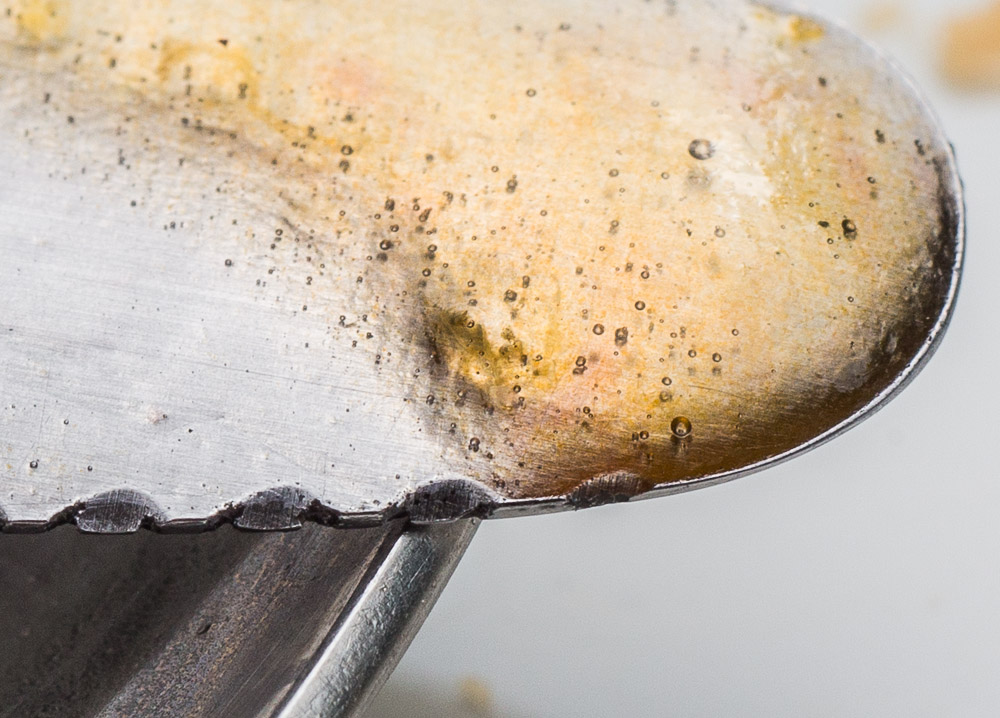 Ich kann auch noch ein paar Bilder von der gleichen Objektivversion beisteuern - mit diesem Objektiv entdeckt man definitiv neue Bereiche (beispielsweise habe ich bisher nicht gewußt wie unregelmäßig ein Messer-Wellenschliff ist - was ein unschätzbares Wissen ist... (;-):