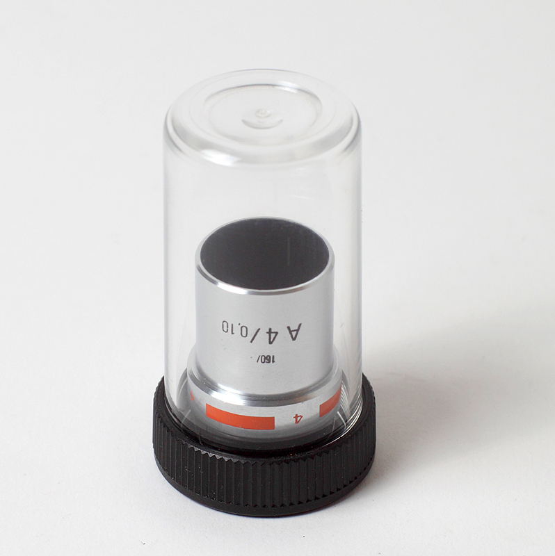 Die 4 bedeutet, dass dieses Objektiv eine 4 fache Vergrößerung am Mikroskop erzeugt.
