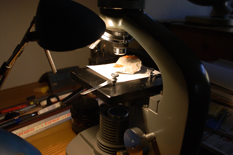 Mein erstes Motiv war ein Stück Dolomitgestein aus den Alpen mit einer rotbraun-orange farbigen Flechte besetzt.