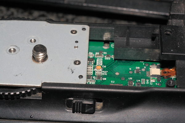 Ich habe zwar keine Erfahrung damit, aber hab mir das Problem mal an einem Handgriff für die 5D MKII angesehen. Dieser hat auch den von Dir beschriebnen Zahnradmechanismus, ebenso wie der für die EOS 400D. Dabei fielen mir zwei Dinge auf: