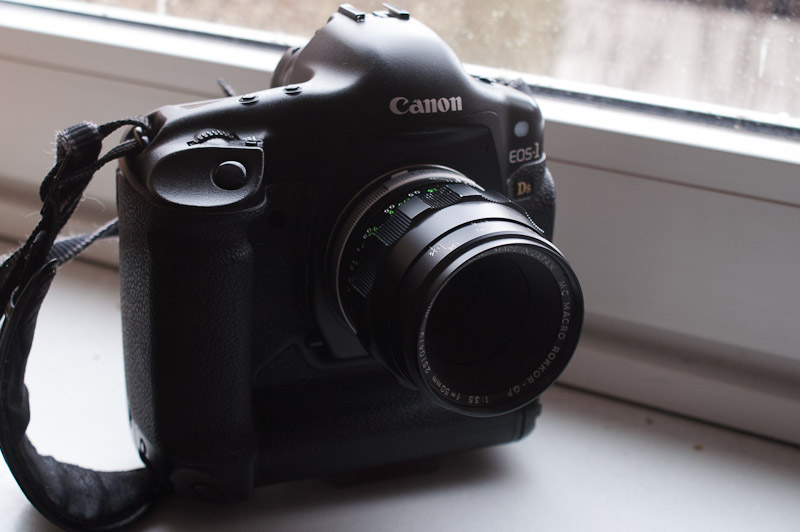 lange ist mein letzter Umbau (MC 85/1.7) her, jetzt fiel mir letztens wieder mein 50er 3.5 Makro von Minolta in die Hände.. dazu kam hier im Forum irgendwo ein Beitrag, dass das Objektiv sehr gut sein soll, also wollte ich es an der Canon haben :D