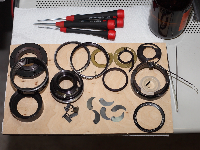 Na ja, es ist nicht mein erstes Objektiv, welches ich zerlegt habe. Jedoch ist das Pancolar nicht ganz so unkompliziert. Manchmal fragt man sich, was sich die Konstrukteure da gedacht haben. Warum einfach, wenn es auch umständliche geht. Jedenfalls war der Zusammenbau der Blendenmechanik nicht ganz so simpel. Wenn man das schafft, ohne Schreikrämpfe zu bekommen und das Ganze aus dem Fenster zu schmeissen, ist man gerüstet für fast alle Aufgaben.:) Man benötigt eine ruhige Hand und gute Nerven.