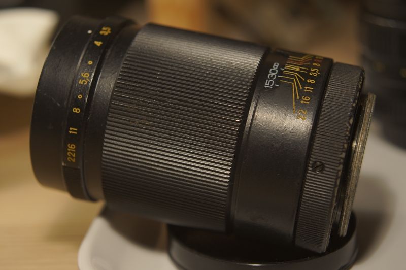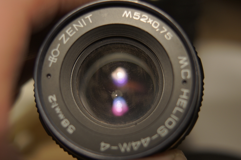 ich habe mal wieder ind der Bucht zugeschlagen und eine Zenith Kamera ersteigert mit Helios-58mm. Als Beifang gab es noch ein nicht näher ausgewiesenes Teleobjektiv dazu, das sich als Jupiter-37 3.5 135mm herausstellte. Die Optiken scheinen o.k. und ohne Pilz, nur äußerlich verdreckt. Ich habe z.B. bei dem Jupiter auf die Frontlinse Isopropyalkohol aufgetragen, vorsichtig mit einem Q-Tip, verdunsten lassen, das ganze nochmal wiederholt, dann vorsichtig mit weichem Fliesstoff nachgewischt.