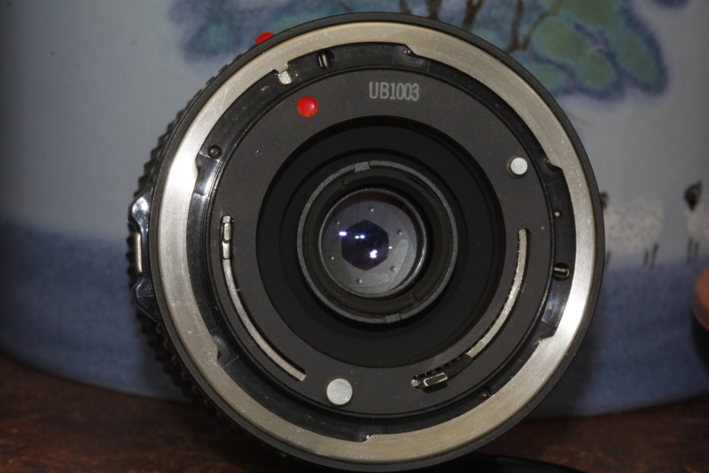 Wie dem auch sei, wenn ich jetzt die originale hintere Verschlusskappe aufsetze, dann funktioniert die wie ein FD-Body und nimmt alle beweglichen Teile im FD-Bajonett mit. Die Blendenfunktion kann durch die Optik von vorne kontrolliert werden.