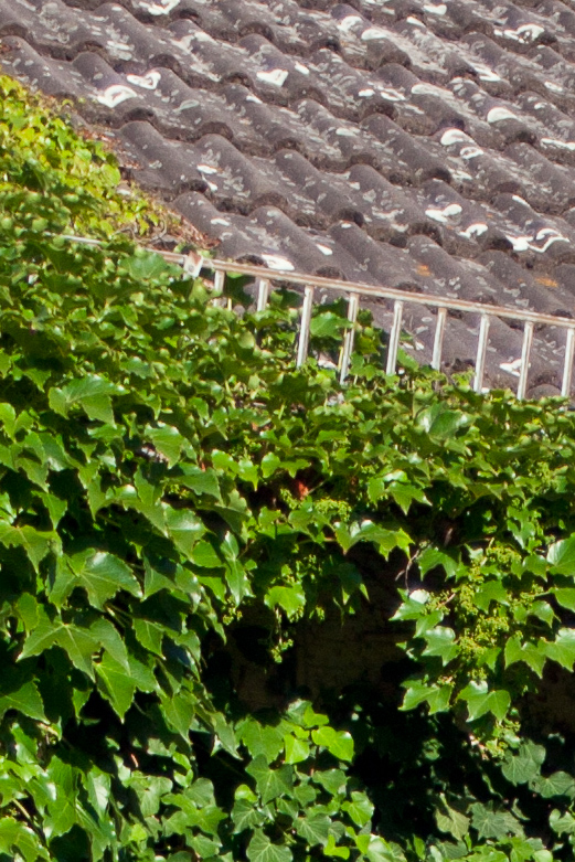 Bis hier kann ich keinen Nachteil beim Tokina erkennen. Es vignettiert etwas weniger als das Angenieux, die Mittenschärfe ist vergleichbar, die Randschärfe ist bei Offenblende beim Tokina deutlich besser als beim Angenieux (s. den Dachgiebel in der Vollauflösung) und auch wenn man das Angenieux auf f/2.8 abblendet, kann es nur knapp gleichziehen. Auch im direkten Vergleich der 100%-Crops bei f/2.8 scheint mir das Tokina einen Hauch kontrastreicher abzubilden (Dachziegel) und minimal weniger zu Überstrahlungen zu neigen (Glanzlichter auf den Blättern).
