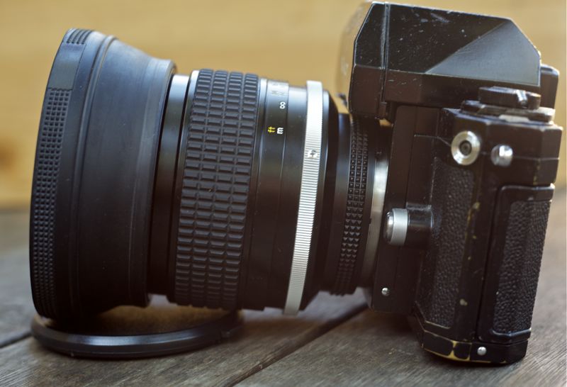 Beim Testen an meiner F mit Photomic-Sucher wurde mir auch sofort klar, warum der Blendenring so unergonomisch klein ist.