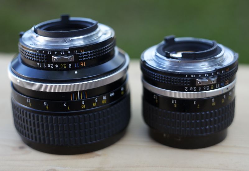 Hier noch ein Groessenvergleich mit der kleinen Schwester, dem Nikkor f2/85mm Ai-s.