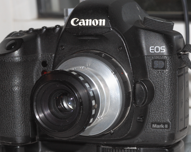 Hierbei macht das Grundmodul an der EOS die verwendbaren V-Objektive zu "normalen Objektiven" die unendlich erreichen können und bei dem hier gezeigten Rodagon eine Naheinstellgrenze von ca. 50 cm ermöglicht !!