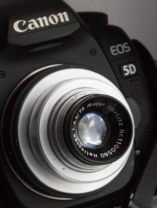 Meyer Görlitz Helioplan 4.5/75mm an der Spiegelreflex am Laufen.. einfach nur genial (wie Du merkst, ein geniales Bastelsystem für alles mögliche !)