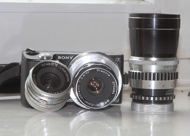 So haben wir mit dem VNEX Modul und 3 x 10er Muttern ein Wechselsystem für Deine 3 Stck. Braun Paxette Objektive..