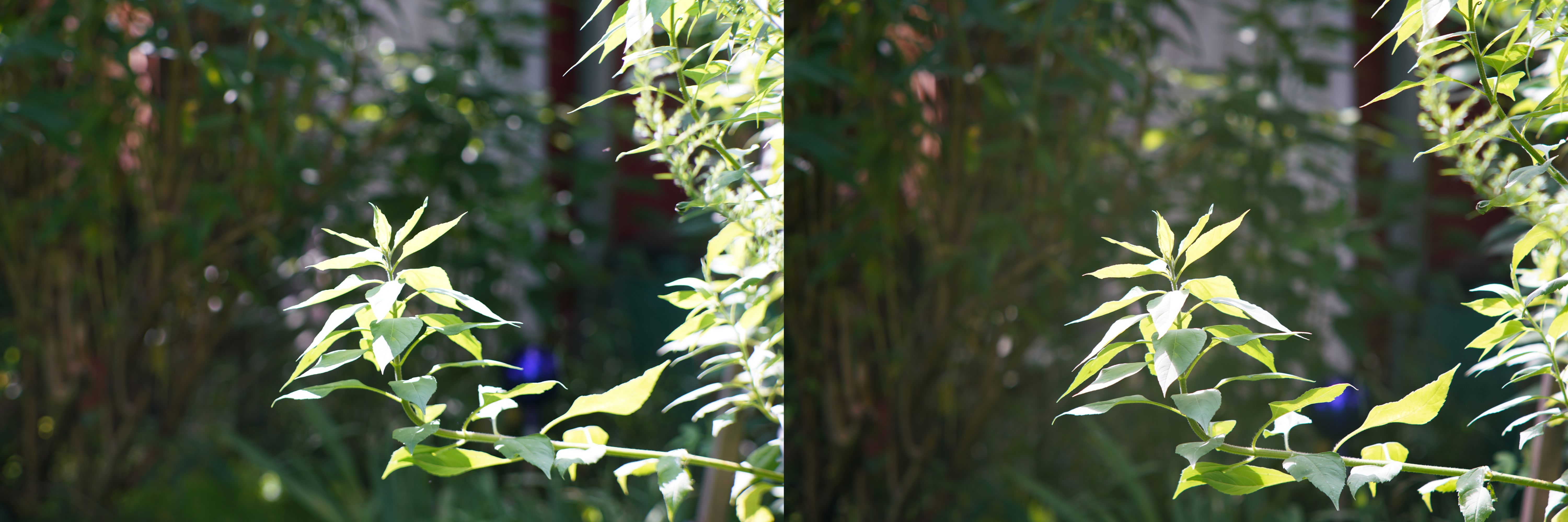 Hier der Vergleich. Rechts das Raynox Polaris, links das Sigmatel. Erst f/1,8, denn jeweils f/4.