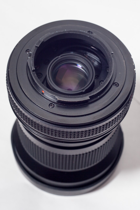 Nach einigem Suchen wo der Hebel fuer die Blendenuebertragung ist wurde mit klar, dass es keinen gibt. Auch an der Contax musste man hier wohl Arbeitsblende verwenden, da ein einfacher Hebel nicht mit dem Shift-Mechanismus kompatibel waere.