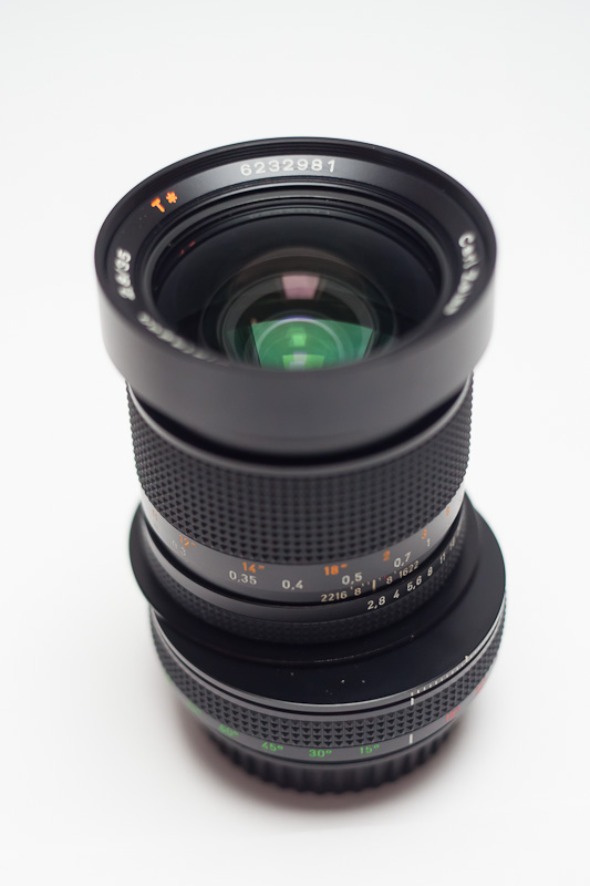 Hier moechte ich kurz das Carl Zeiss PC Distagon T* f2.8 35 mm, dass ich in der vergangen Woche mit einer recht umfangreichen Contax Sammlung erwerben konnte. Aus dieser Sammlung war es sicher das Sahnestueck.