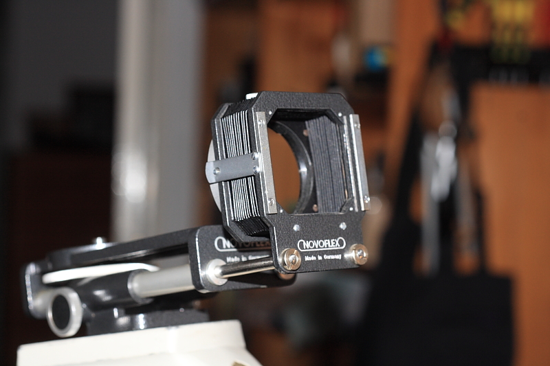 Wie man sehen kann, muss es nicht das VNEX System sein, sonder es geht auch am klassischen Balgen und hat sogar den Vorteil eines abgestimmten Kompendiums mit Diahalterung.