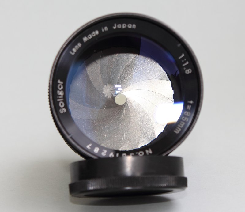 Genaue Bezeichnung: Soligor 1:1.8 f=85 mm. Lens Made in Japan.