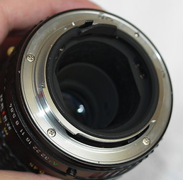 Wie bekomme ich ein SMC Pentax A Dental Macro 100/4 (Pentax-K) an eine Canon EOS 5D adaptiert? Welche Adapter empfiehlt sich und muss ich am Objektiv Umbaumaßnahmen vornehmen? Hier eine Abb. der Rückseite: