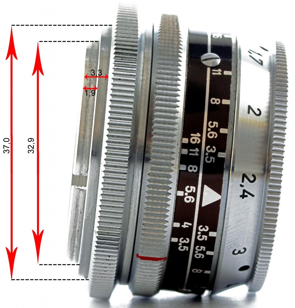 Ich bräuchte die Durchmesser an den beiden mit Pfeilen markierten Bereichen und von jedem Bereich auch noch die Tiefe.. das Objektiv bitte auf unendlich stellen vor der Messung.