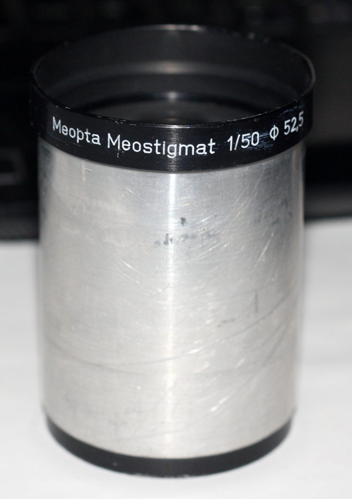Der Durchmesser des Meostigmat 1/50mm - Tubus entspricht mit 52,5mm dem größeren Bruder 1.4/70mm, da es im gleichen Projektor, dem Meoclub 16 alternativ zum Einsatz kommen kann.