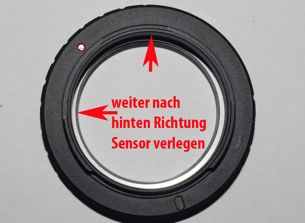 Natürlich muss dann zunächst dafür Sorge getragen werden, dass das Objektiv zusammen mit dem Tubus auch nah genug an den Sensor kommen kann.