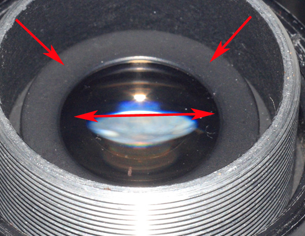 Der überstehende Fassungskragen hatte eine Weite von 24mm - begrenzte also umlaufend um 1mm die Ausleuchtung des Bildkreises, was für den 16 mm Projektor wohl keine Rolle spielte.