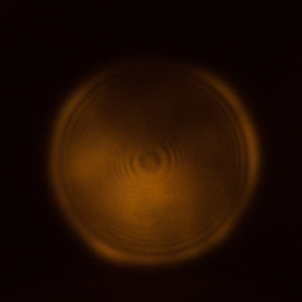 Wäre das am Rand könnte ich wohl damit leben, aber so mittig stellt das ein Problem dar, da es auch abgeblendet nicht verschwindet. Das Bokeh einer unscharf gestellten Na-Lampe aus großer Entfernung bei offener Blende sieht so aus: