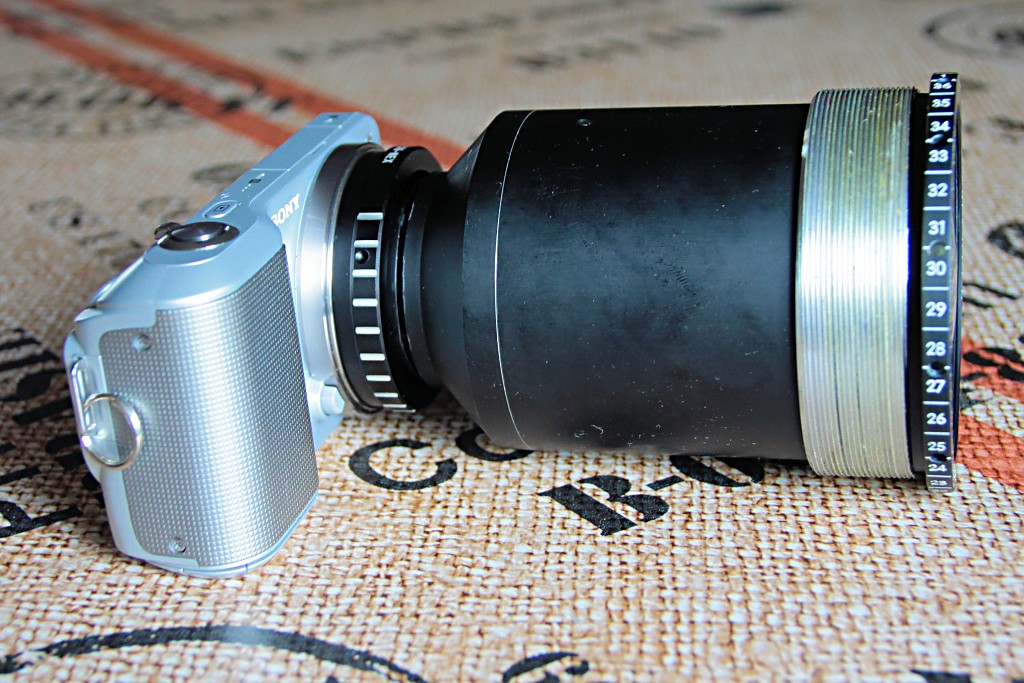 Und was soll ich sagen: Zumindest provisorisch ist es mir schon mal gelungen, meine NEX hinter dieser riesigen Frontlinse zu verstecken und damit sogar brauchbare Ergebnisse zu erzielen.