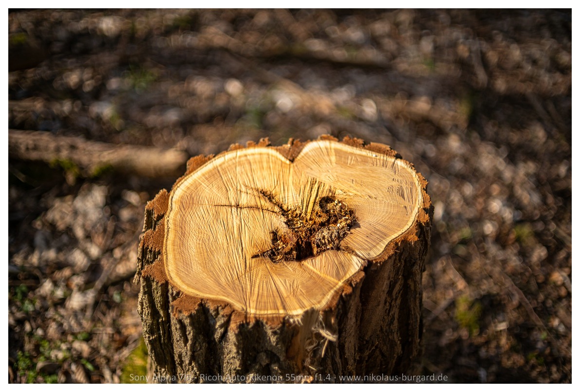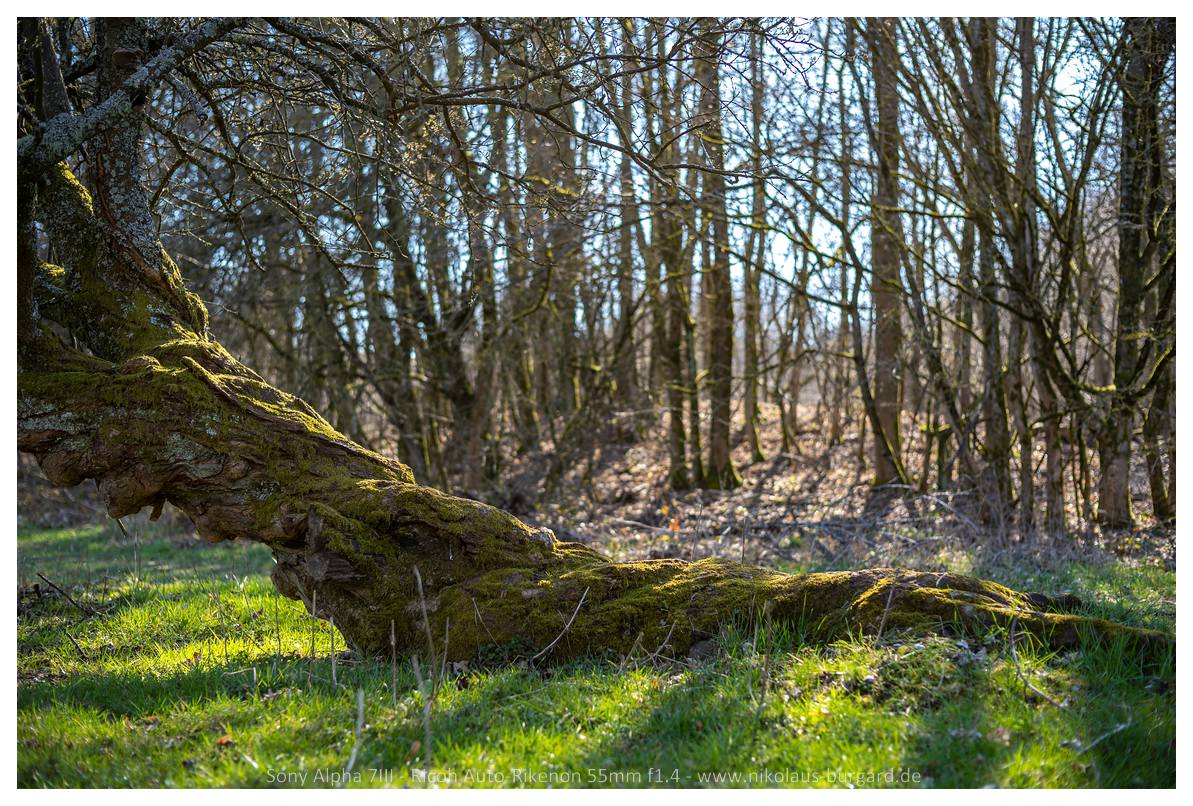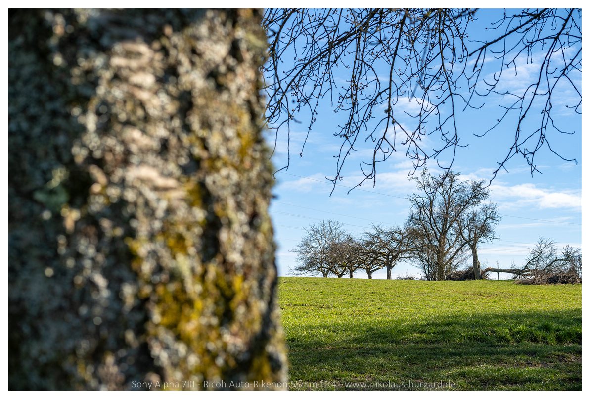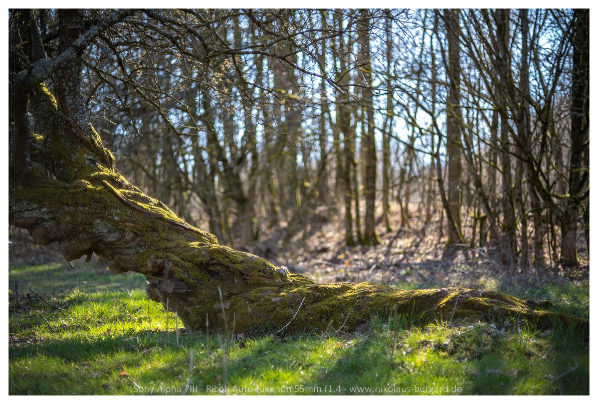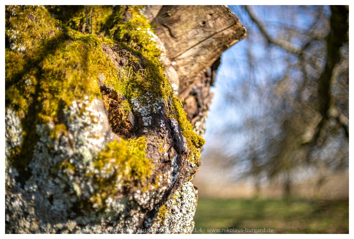 #21 f1.4 auf mittlere Distanz, Fokus auf dem Baumstamm