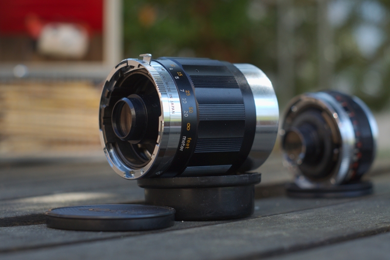Kürzlich habe ich zwei Objektive von Kowa für kleines Geld ergattert. Einmal ein 2/50mm und dann ein 3,5/100mm. Beide sind Wechselobjektive für Kowa SET (Kleinbild-Spiegelreflex). Bei diesen Objektiven ist der Blendenring nicht auf dem Objektiv sondern fest auf der Kamera. Die Blende selbst sitzt allerdings im Objektiv. Mein Plan ist, diese Objektive für andere Kameras nutzbar zu machen. Das Auflagemaß ist beträchtlich, bei einem M42-Adapter ist bei Fokussierung auf Unendlich noch ca. 1cm Platz zwischen Objektiv und Adapter.