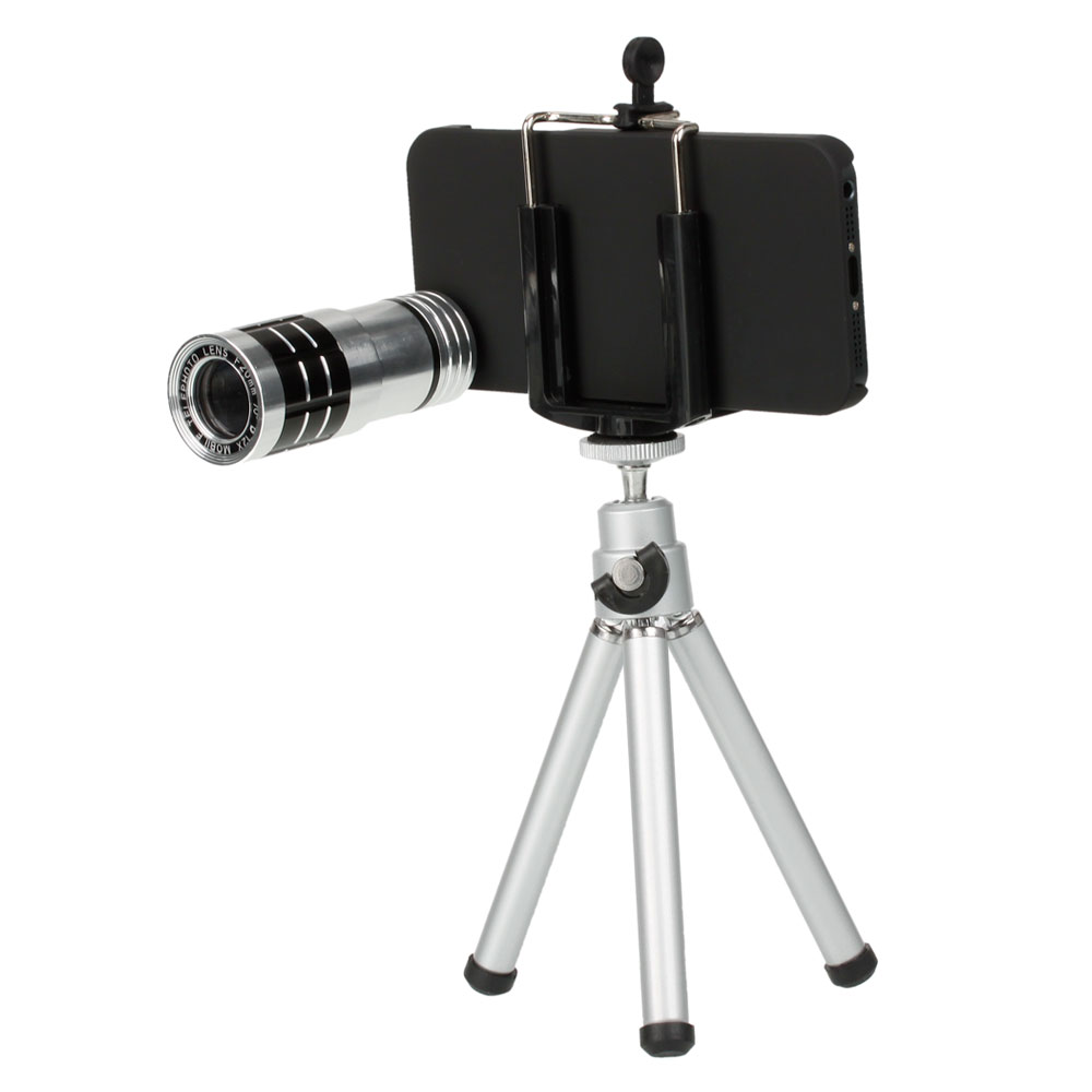 12X Zoom Mobile Teleskop Objektiv mit Stativ für iPhone 5 Silber & Schwarz