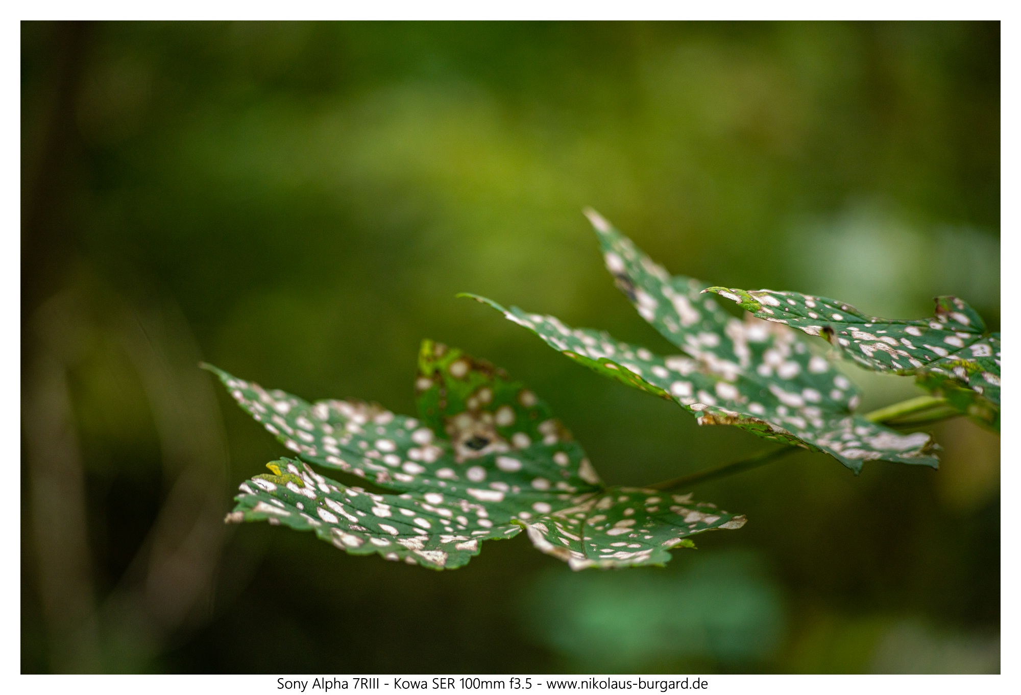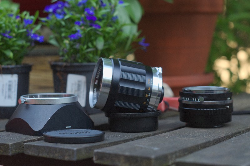 In Blendenstellung 3,5 sind die Lamellen nicht vollständig geöffnet, die Mechanik des Objektivs lässt das nicht zu. Da ich keine Fehler im Objektiv und auch keine im Adapter sehen kann und da sich die anderen Kowa-Objektive nicht so verhalten, wird es wohl eine absichtliche konstruktive Eigeheit des 100ers sein. Nimmt man das Objektiv vom Adapter, öffnen sich die Blenden vollständig. Bei Aufnahmen mit Offenblende sind die Zerstreuungskreise allerdings rund. Ist schon eigenartig.