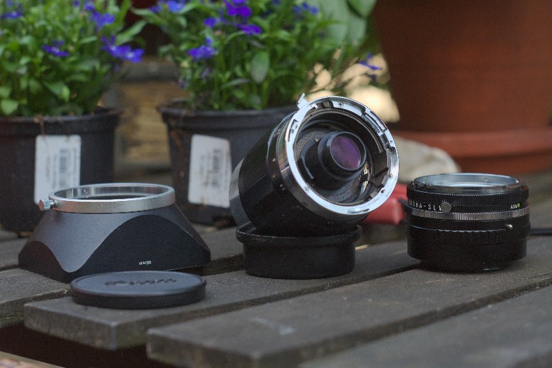 Das Objektiv hat drei optische Gruppen. Ich sage das mit Vorbehalt, denn ich habe es nicht komplett zerlegt. Jedenfalls gibt es ein Frontelement, eines in der Mitte vor der die Blende und eines ganz hinten.