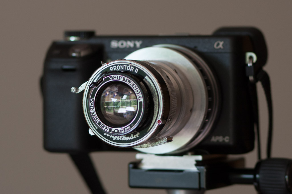 Wie dem auch sei, ich habe mich entschloßen das Objektiv dieser Kamera, ein Voigtländer Voigtar 3,5/7,5cm aus der