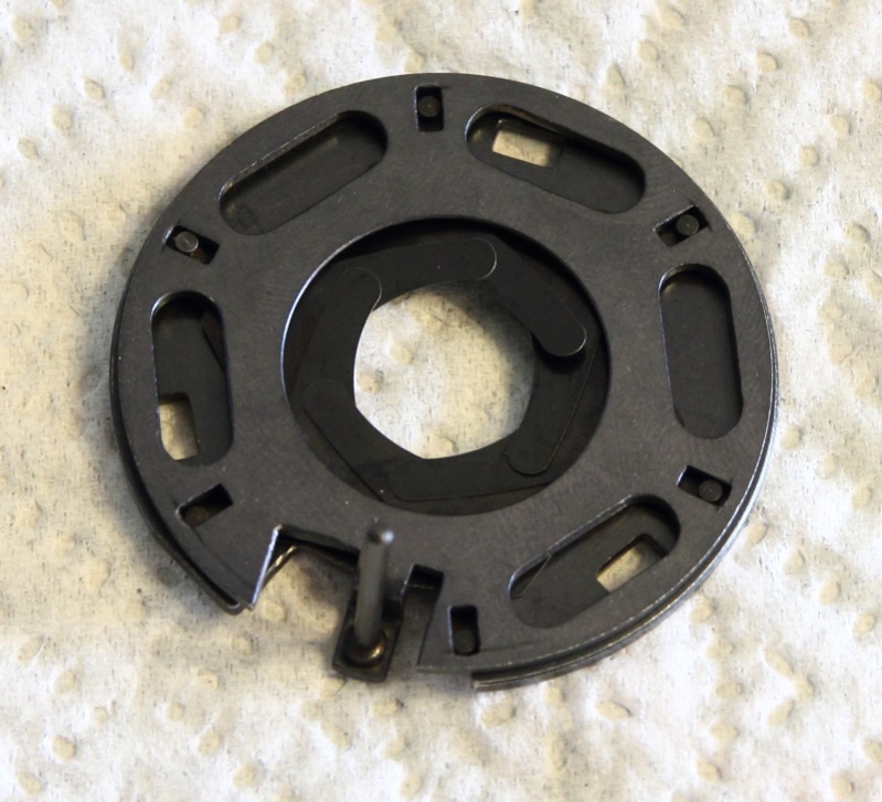 Im nächsten Bild ist die wieder zusammengesetzte Blendeneinheit zu sehen. Diese wieder in das Objektiv einzusetzen ist etwas fummelig. Wenn es geglückt ist das Objektiv wieder montieren.