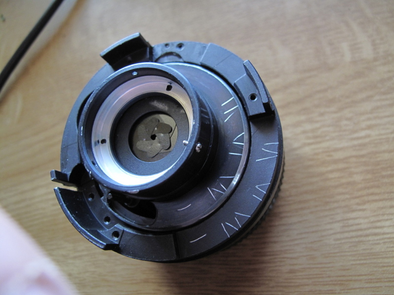 Das hintere Linsenelement lag komplett locker drin, also habe ich es mal aufgeschraubt: