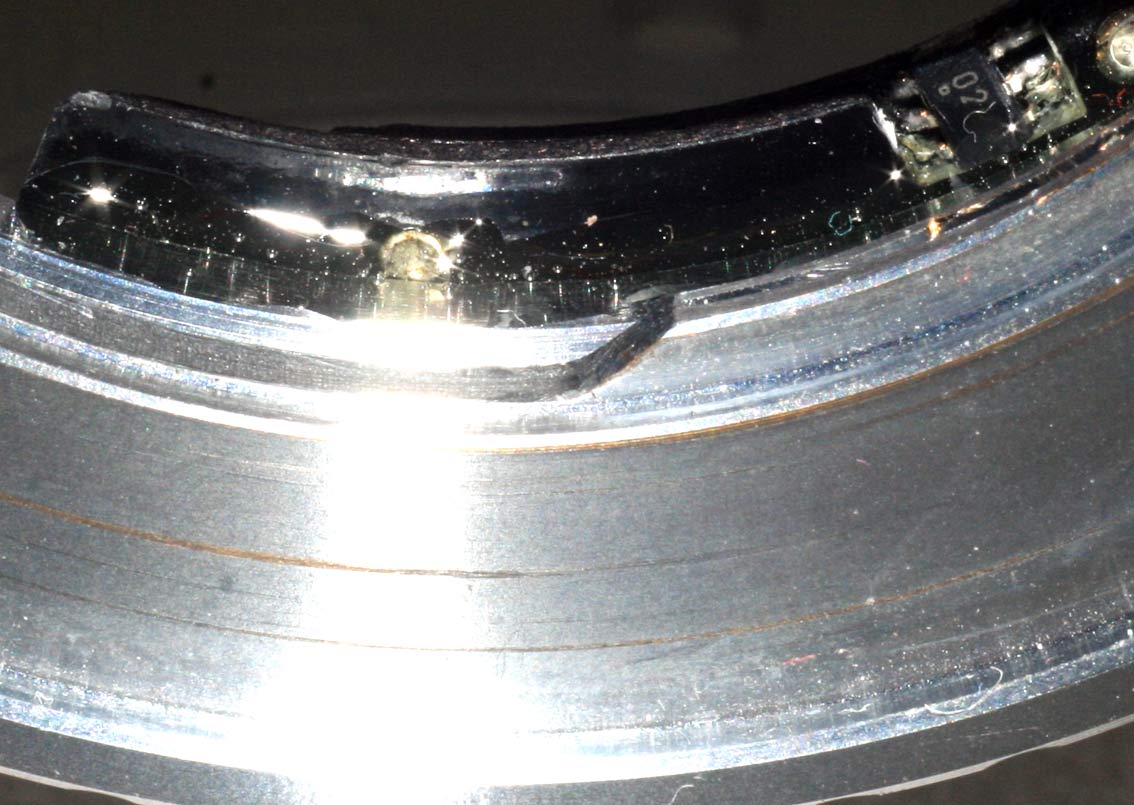 Hier mal eine Nahaufnahme von einem Chip, der auf einem dünnwandigen PB aus EOS Adapter geklebt wurde. Sehr schön erkennt man die zusätzliche Verstärkung durch das ausgehärtete Bett das der 2K Kleber hier gebildet hat.
