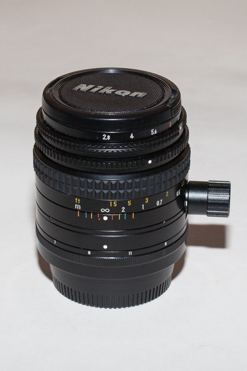 Dies hier ist die letzte Version aus 1980, eine leicht modifizierte, jedoch optisch deutlich bessere Version des PC-Nikkor aus 1968. Soweit ich weiß, war das PC-Nikkor 35 2.8 das erste Shift-Objektiv überhaupt.