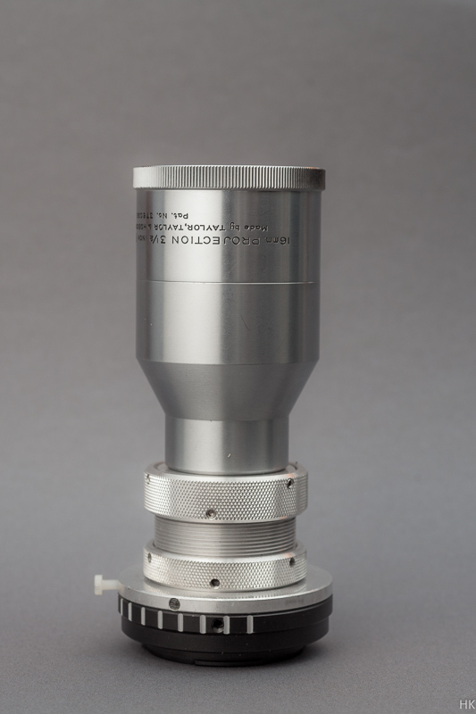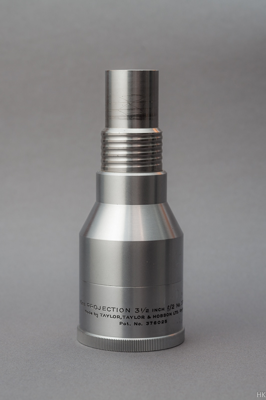 Die genaue Bezeichnung der Firma heißt Taylor, Taylor & Hobson LTD, England und das Objektiv ist beschriftet als 16mm Projection 3 1/2 Inch f/2