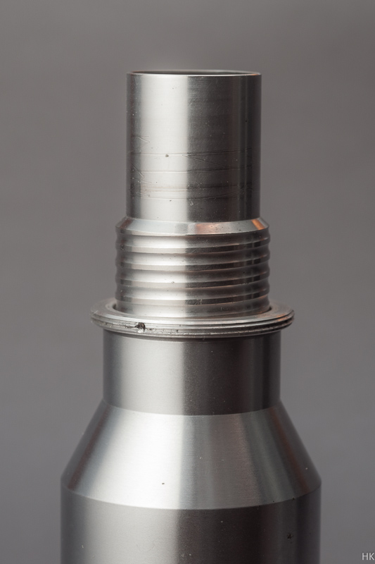 Es handelt sich also offensichtlich um die Linse eines 16mm-Filmprojektors und sie ist mir zusammen mit einem kleinen Bruder (2 Inch, f 1.65) für den Gegenwert weniger Äpfel und Eier zugeflogen. Lange schlummerte dieses Kuriosum in der Schublade ganz unten da mir die Konstruktion denkbar ungeeignet für die Adaptierung an eine Kamera erschien. Aber dank Henrys genialem VNEX-System war es jetzt eigentlich völlig unproblematisch. Man muss nur eine passende Wandlerplatte an dieser Stelle am Objektiv fixieren: