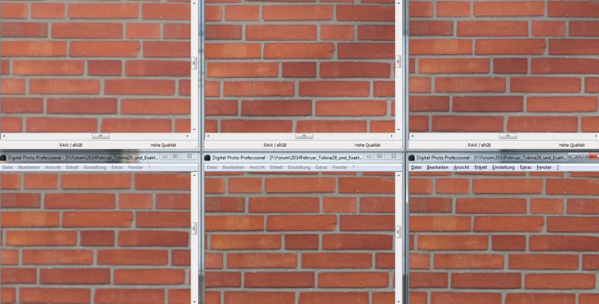 ... hier Crops aus dem Zentrum, oben Tokina unten Exakta, f= 2.8 / 4.0 / 5.6 / 8.0