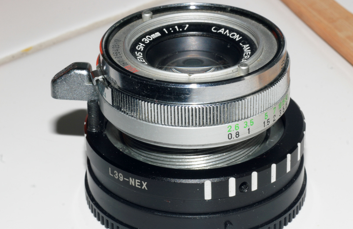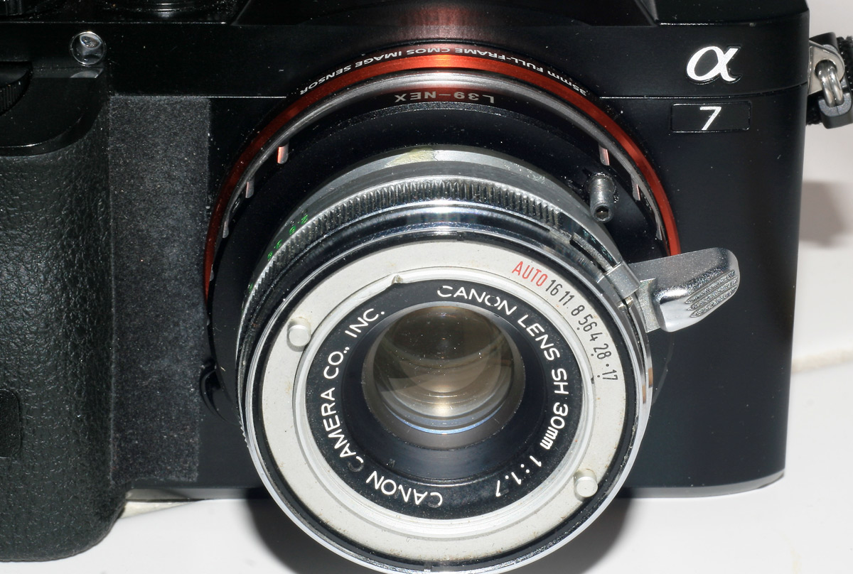 Canon SH 1.7/30mm Halbformat-Objektiv aus Canon Demi EE 17 an der Sony A7