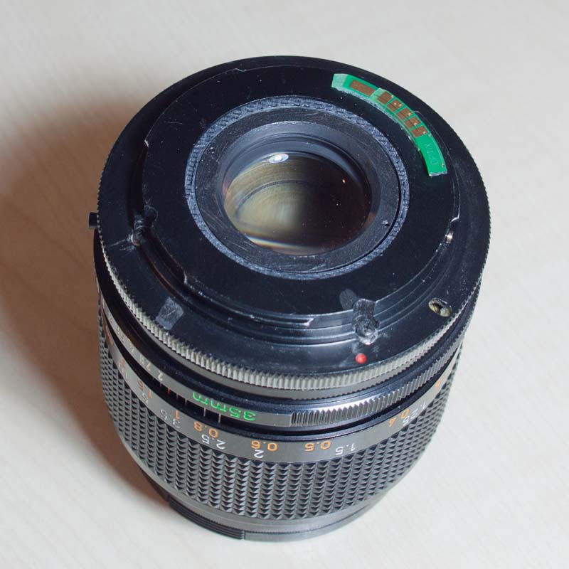 bei den Umbauten der Objektive auf EF-Bajonett hat mich bisher die offene Rückfront im Objektiv gestört. Die Abdichtung, die Lichtfalle fehlt. Die FD und nFD Objektive haben diese Funktion im Bajonett integriert, welches ausgebaut wird. Die Front ist zwar dem dunklen Kamerakörper zugewandt, doch weiß ich nicht, ob Streulicht eventuell doch Minderung der Bildqualität bewirkt, oder beim Objektivwechsel Staub ins Objektivinnere gelangt. Ich habe in Ermangelung einer Drehbank bisher keine Lösung gehabt.