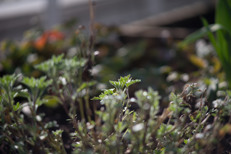 Hinter der Schärfeebene weiches Bokeh und Highlight ohne Ränder, vor der Schärfeebene allerdings ziemlich hässliche Ränder um die Highlight. Man sieht auf dem Bild auch, dass die eingebaute Sonnenblende ihre Aufgabe gut erledigt. Trotz Gegenlicht und der Sonne knapp oberhalb des Bildrands sind keine Flares oder Blendenflecke zu sehen.