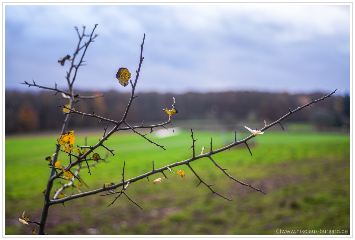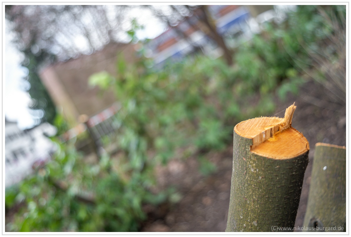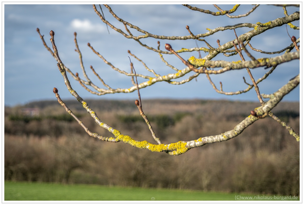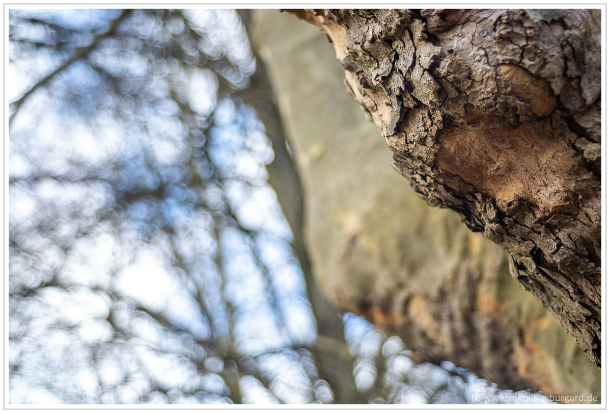 Die Neigung zu Quer-CAs (Farbsäume an Kontrastkanten im Randbereich) ist bei 70mm sehr gering, nimmt aber zum kürzeren Ende hin deutlich zu, wie die höher aufgelösten Versionen dieser beiden Bilder an den Zweigen vor dem Himmel zeigen: