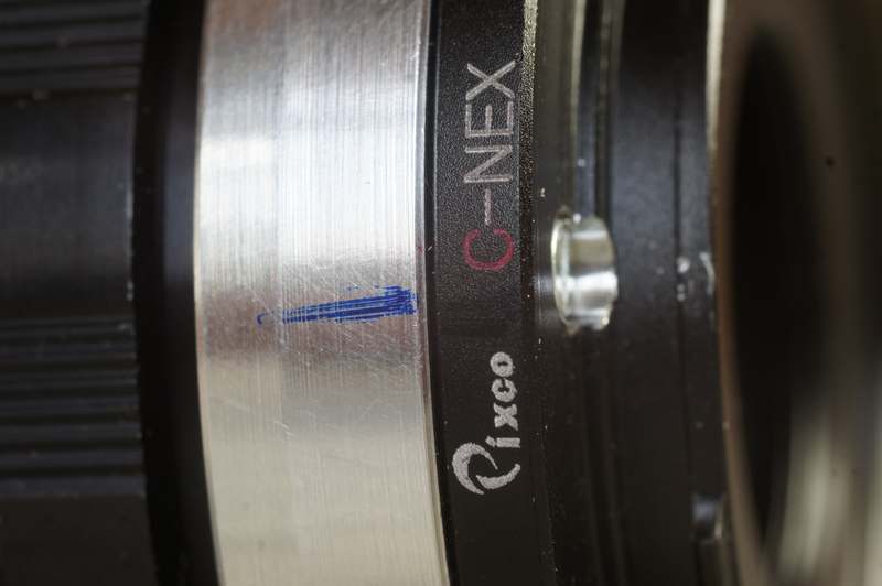 Ein Adaperring C-Mount auf NEX stellt den Anschluß her.
