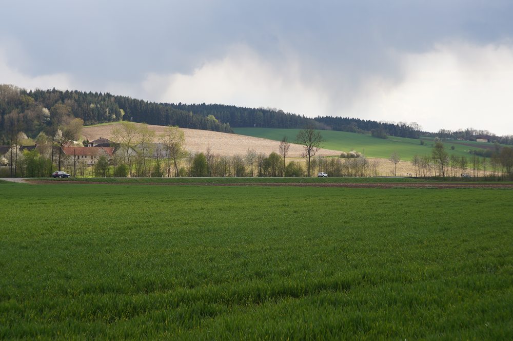 leider nicht horizontal ausgerichtet, der Ipfbach - hinter der Baumreihe - fließt von rechts nach links in Richtung Donau.......:run: