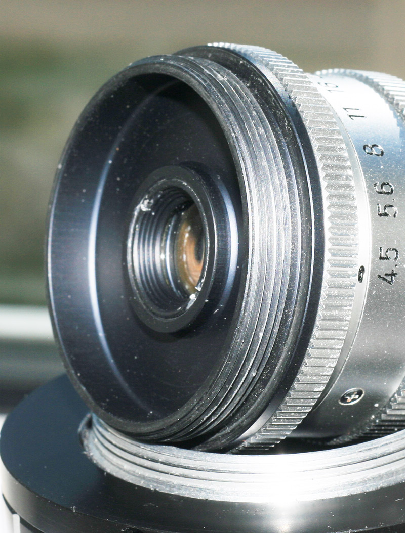 Entweder läßt sich dieser Ring herausdrehen und gibt das gleiche M39 Gewinde wie bei meinem Exemplar frei, oder das Objektiv ist grundsätzlich anders